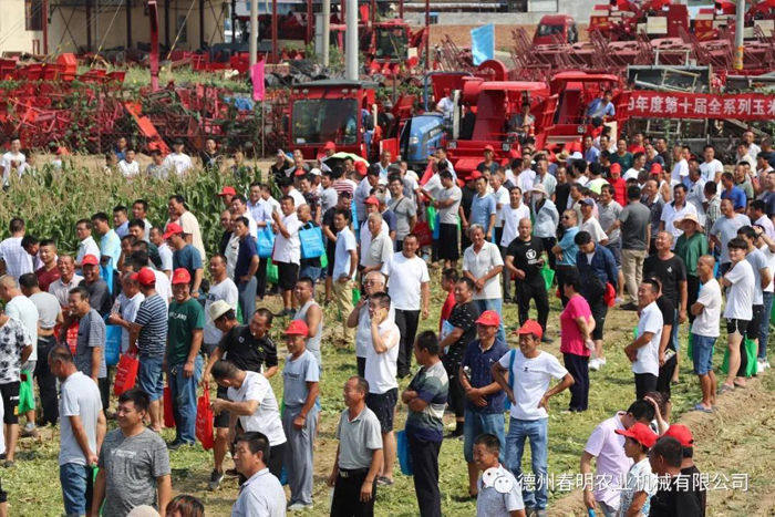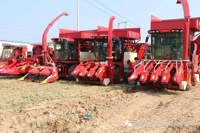 At the promotion meeting, 9 products including Chunming 4YZQP-4 ear and stalk corn harvester, 4YZP-4A self-propelled corn harvester, 4YZQP-3B ear and stalk corn harvester, 4YZP-3B self-propelled corn harvester, matching 4QX-2400 green fodder harvester harvesting platform, matching 4QX-1400 green fodder harvester harvesting platform, 4YPU-3A crawler corn harvester, 4YPU-2A crawler corn harvester, 4YZP-2C self-propelled corn harvester (four-wheel drive) were demonstrated for harvesting operations. In addition, straw crushing and recycling machine, new eight-plow plow - plow type plow and other products were demonstrated at the operation site. The operation effect was good and received unanimous praise from the leaders, dealers and users who attended the meeting. The promotion meeting also launched preferential purchase activities for related models, and received more than ten sets of machine orders from users on the same day.